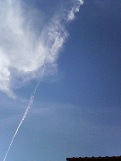 昨日、飛行機雲がくっきりと出ていたので、思わず撮ってしまいました。